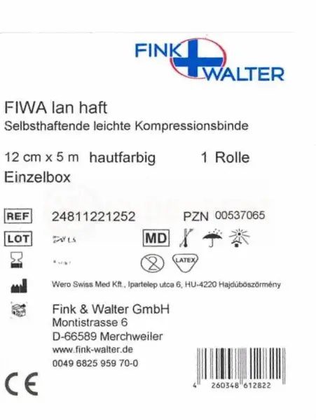 FIWA lan haft Kompressionsbinde 12cm x 5m 1 Rolle PZN 00537065