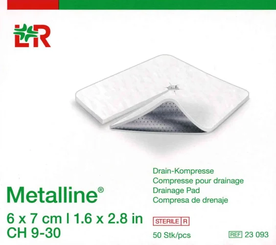Startseite » Shop » Metalline Drain-Kompresse steril 6x7cm 50 Stück PZN 02072713